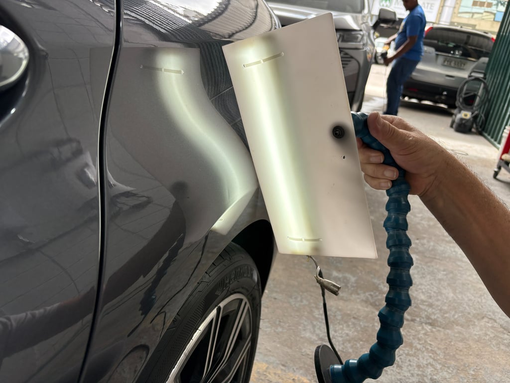 Reparo de amassados causados por granizo com técnica de martelinho de ouro, preservando a pintura original e mantendo a originalidade do veículo.